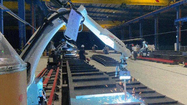 該智能焊接方案應用,充分結合鋼結構行業場景,智能焊接機器人的應用解決了高強度、高風險、高重復的“三高”工作,同時無需用戶進行復雜的機器人編程操作。1人可同時操作4臺設備,提高生產效率,保障企業生產安全,降低企業成本,大幅提升了生產質量與效益。